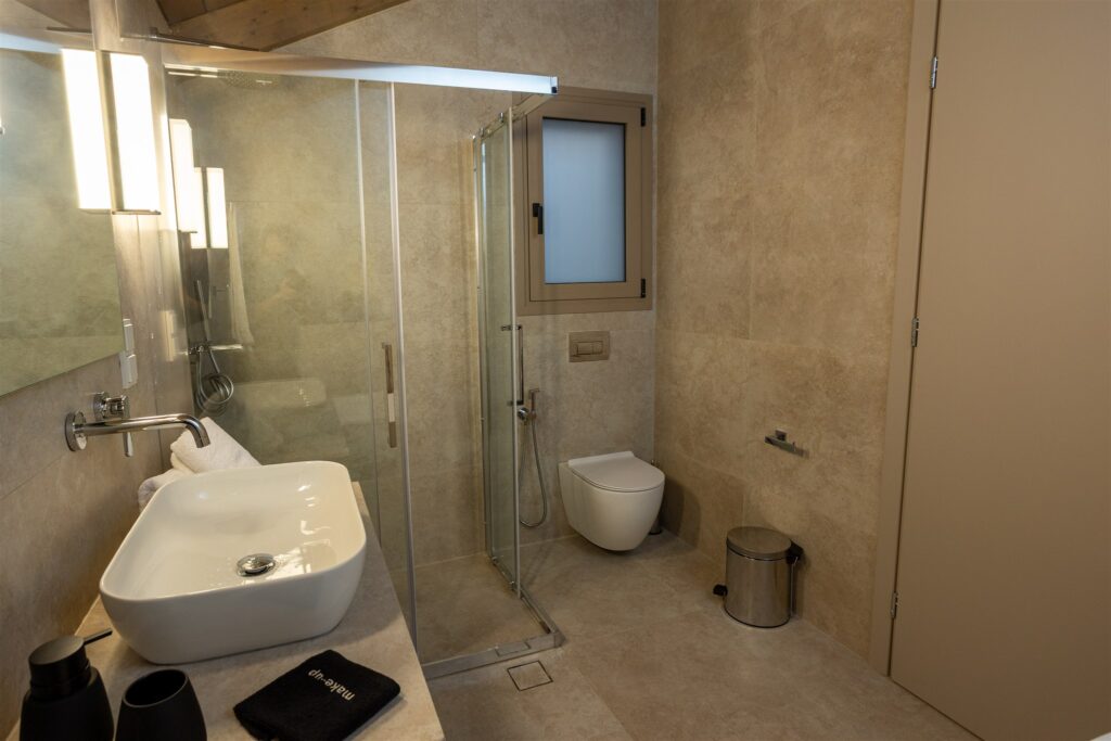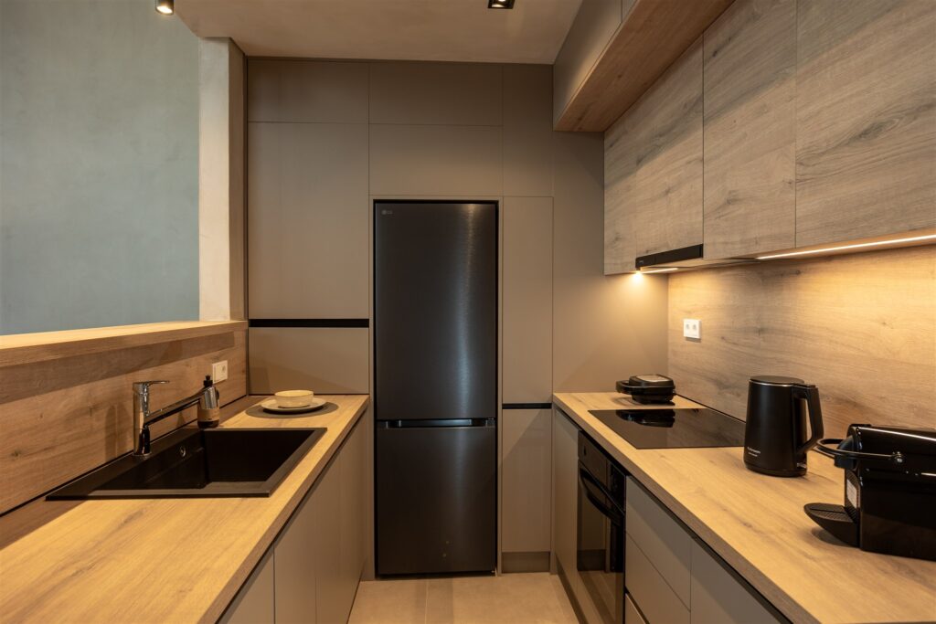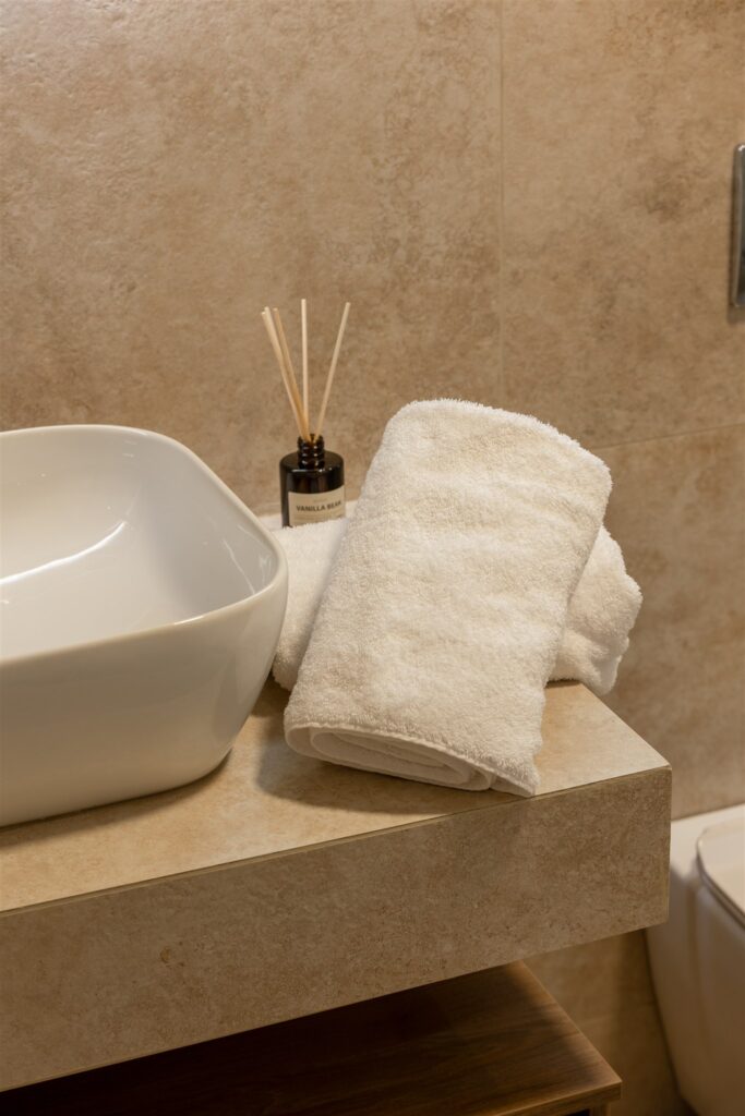 The fully equipped kitchen is thoughtfully designed for extended stays, complete with a stovetop, refrigerator, oven, and essential kitchenware. Soundproof walls ensure privacy and tranquility throughout the villa, while the spacious terrace provides the perfect setting to unwind and take in the surrounding natural beauty. Guests can also enjoy a touch of indulgence with wine or champagne available upon arrival.