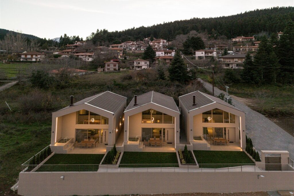 Each villa at Monte Vista boasts a private terrace with stunning views of the Oiti Mountains, creating the perfect backdrop for relaxation and dining. The terrace features a dedicated outdoor dining area, ideal for enjoying meals surrounded by nature. Guests can also unwind in the all-year-round private jacuzzi pool, offering both warmth and luxury in any season while taking in the serene mountain landscape. This thoughtfully designed outdoor space blends comfort, privacy, and natural beauty, making it an inviting extension of the villa’s elegant interiors.